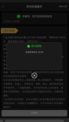 到账情况:严禁充值 领取方式:自助输入手机号碰瓷特邀送了22 安全系数:中 平台资历:自行调查 会员评分:★★☆☆☆ 官方网址:https://134.122.243.82:50004/ 流水限制:自行查看