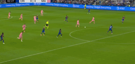 第62分钟,梅西后场断球,随后送出致命直塞!阿连德杀入禁区内单刀破门!梅西本场已1射2传,迈阿密国际3-0领先辛辛那提