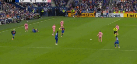 第74分钟,又是梅西与阿连德的连线!梅西再次送出直塞,阿连德杀进禁区扛开对手后卫,单刀梅开二度!迈阿密国际4-0领先辛辛那提