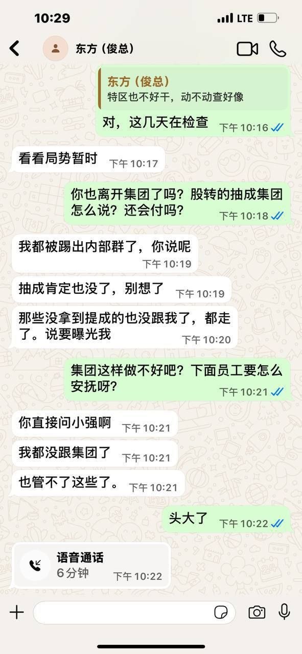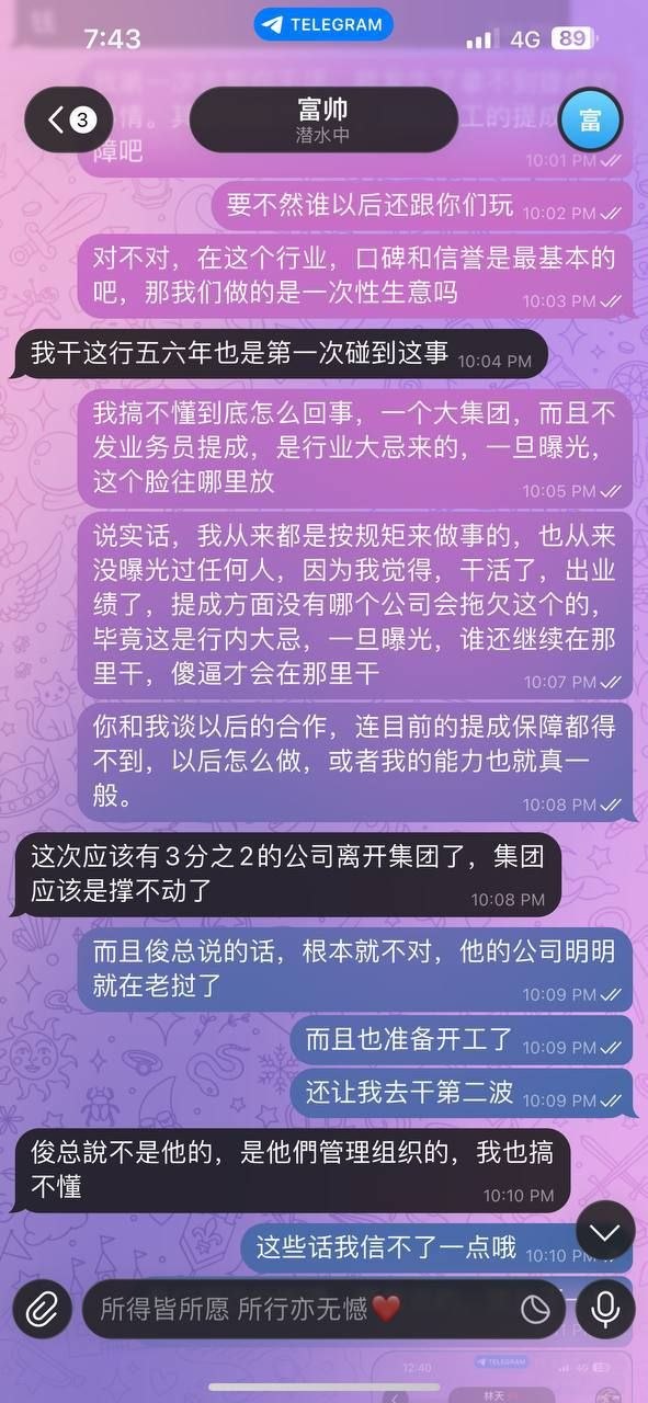 并且要求我们去到老挝进行第二波之后再发送第一波的提成给我们,你说你们离开了集团不再和集团合作,请问这件事情如实吗?(我想九洲集团的领导人联系一下我们,我们毕竟也是为你们付出过汗血劳动的员工,不要因为一个分公司弄坏了您们集团再东南亚的名声)